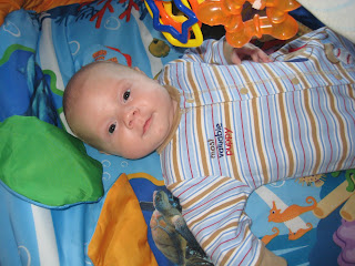 Braiden's been doing great! He is such a happy little guy who enjoys staying up most of the day and unfortunately the night. We rarely hear a cry from him. In fact, the only time he ever attempts to cry is if he's hungry. Braiden enjoys playing on his play mat, tummy time, standing on our laps and jumping, being outside, and smiling! He is cooing up a storm. We go on Wednesday to the GI for a follow up, so I will be posting later this week with his weigh in. Place your bets, we think he's close to 11 lbs!